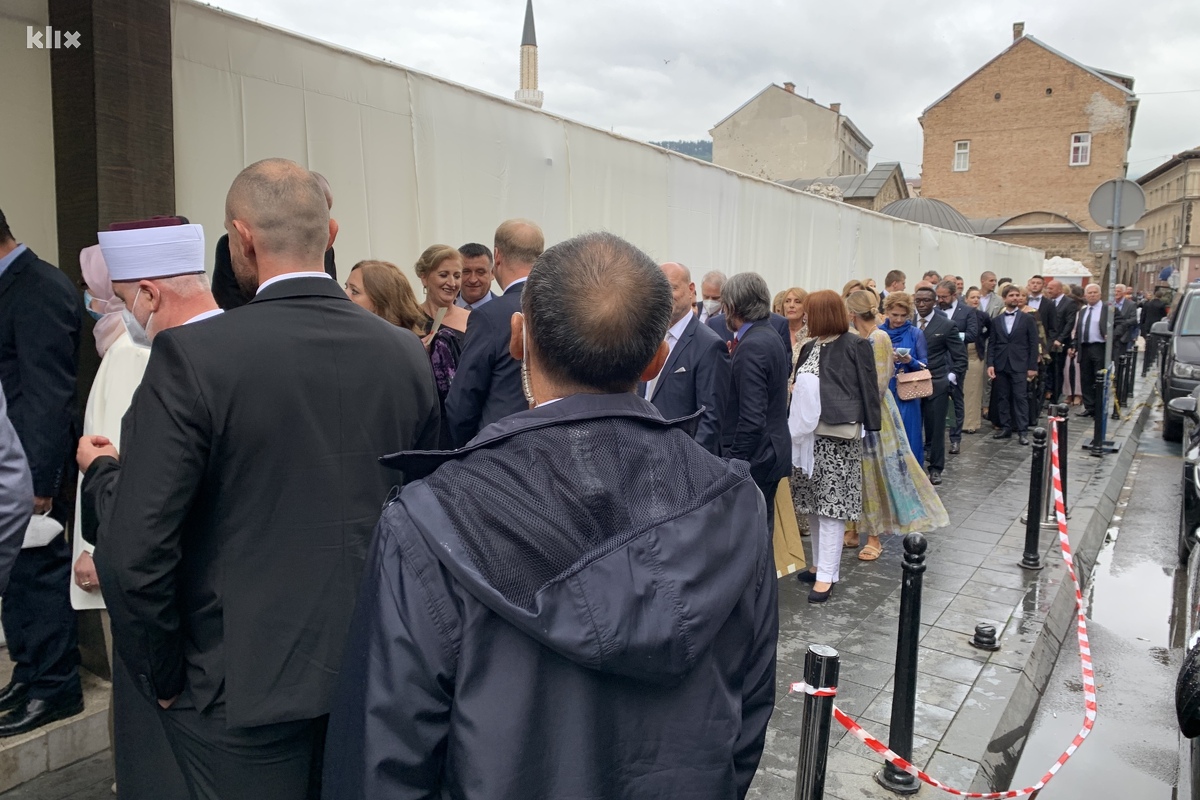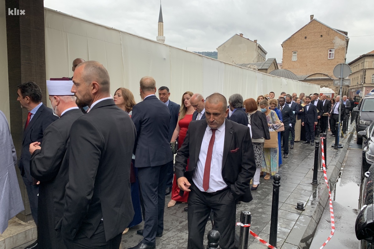 Usprkos kišnom vremenu veliki broj građana se okupio u haremu Begove džamije kako bi ispratili vjenčanje, a pristigle su i brojne zvanice iz političkog svijeta i javnog života.