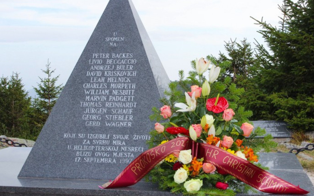 Visoki predstavnik Christian Schmidt danas je podsjetio na stradanje 12 kolega iz OHR-a i UN-a koji su prije 24 godine poginuli u padu helikoptera kod Prokoškog jezera, u blizini Fojnice.