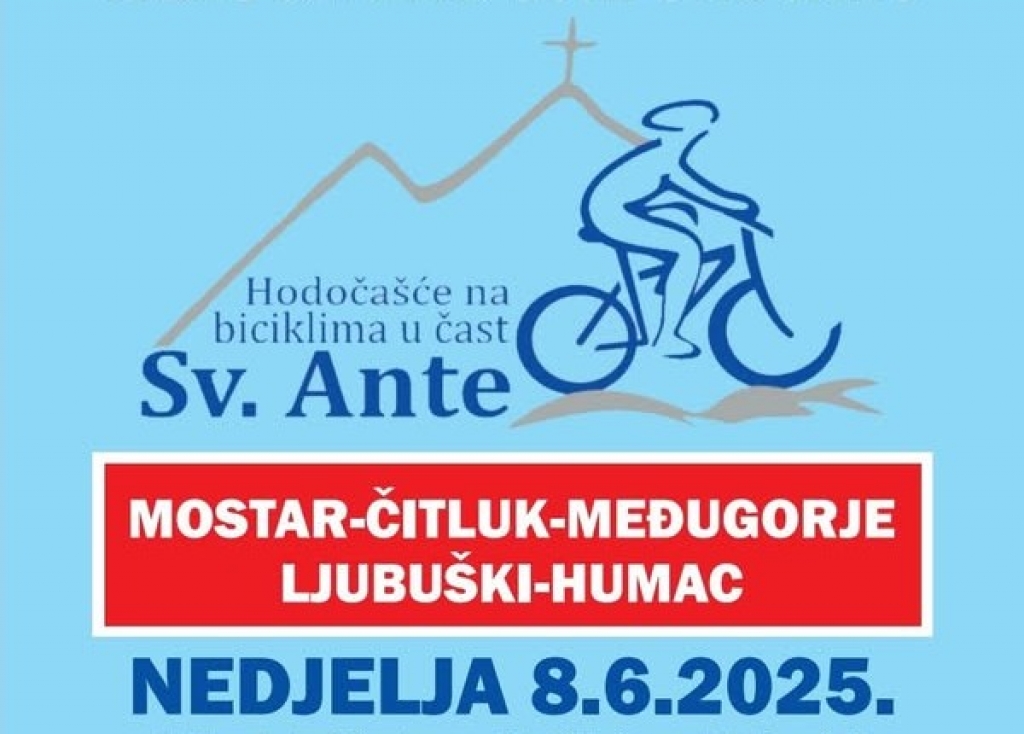 U organizaciji Društva pedagoga tjelesne i zdravstvene kulture Ljubuški, te biciklističkih klubova Mostar, Brotnjo i Ljubuški, u nedjelju 8. lipnja 2025. godine održat će se tradicionalno biciklističko hodočašće u čast sv. Ante, koje okuplja veliki broj rekreativnih biciklista iz cijele Hercegovine.