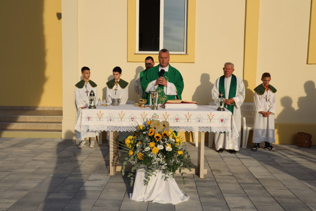 Nakon misnog slavlja i blagoslova zvonika, okupljeni su se preselili na seosko igralište, gdje je priređen domjenak uz pjesmu i druženje. U ugodnoj atmosferi, uz razgovor i smijeh, obilježen je vrijedan jubilej pola stoljeća od gradnje crkve koja je postala središte duhovnog i obiteljskog života mještana.