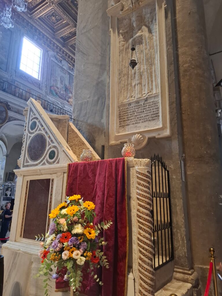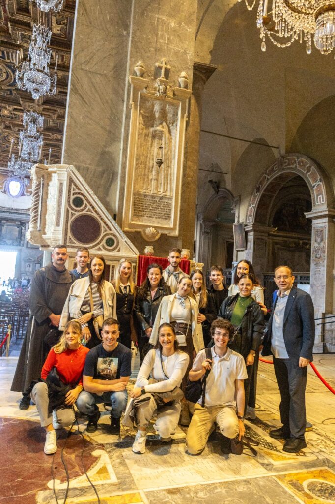 Drugi dan hodočašća bio je posvećen povijesnom i duhovnom središtu Rima. Posebno dojmljiv trenutak bila je posjeta Bazilici Santa Maria in Aracoeli na brežuljku Campidoglio. Upravo ondje, ispod glavnog oltara, počivaju zemni ostatci bosanske kraljice Katarine Kotromanić, blaženice franjevačkog reda. U toj je crkviu subotu, 25. listopada, služena svečana misa koju je predslavio fra Miljenko Šteko, gvardijan franjevačkog samostana Antonianum u Rimu, u spomen na godišnjicu smrti kraljice Katarine. Uz fra Miljenka koncelebriralo je 12 svećenika, među njima i naši vodiči fra Ante i fra Antonio. Na misi su naši putnici sudjelovali čitanjem, a bazilika je bila ispunjena brojnim hodočasnicima iz Hrvatske, Njemačke i Austrije. Također su posjetili. Također, tijekom boravka u vječnom gradu, zboraši su obišli i neka od najpoznatijih rimskih znamenitosti. Poseban dojam ostavila je Piazza Venezia.