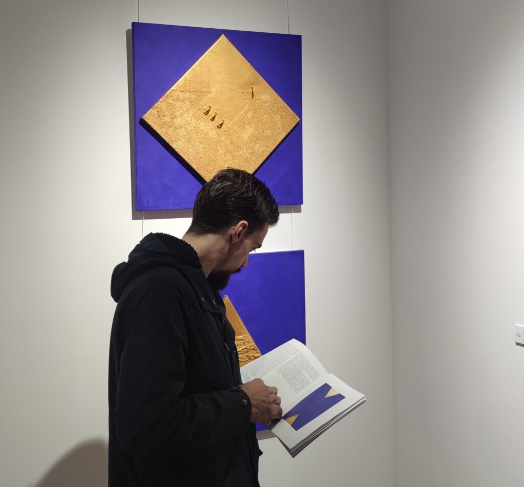 U svom uvodnom obraćanju Jure Paponja djelatnik galerije istaknuo je kako je „ Riječ o reljefima rađenim u kombiniranoj tehnici. Sam ciklus autorice vezan je uz božansko,kroz simboliku geometrijskih likova i same boje. Izložba je za posjetitelje otvorena do 28.11. Svi posjetitelji imaju priliku vidjeti je radnim danom između 9.00 i 15.00 sati.“