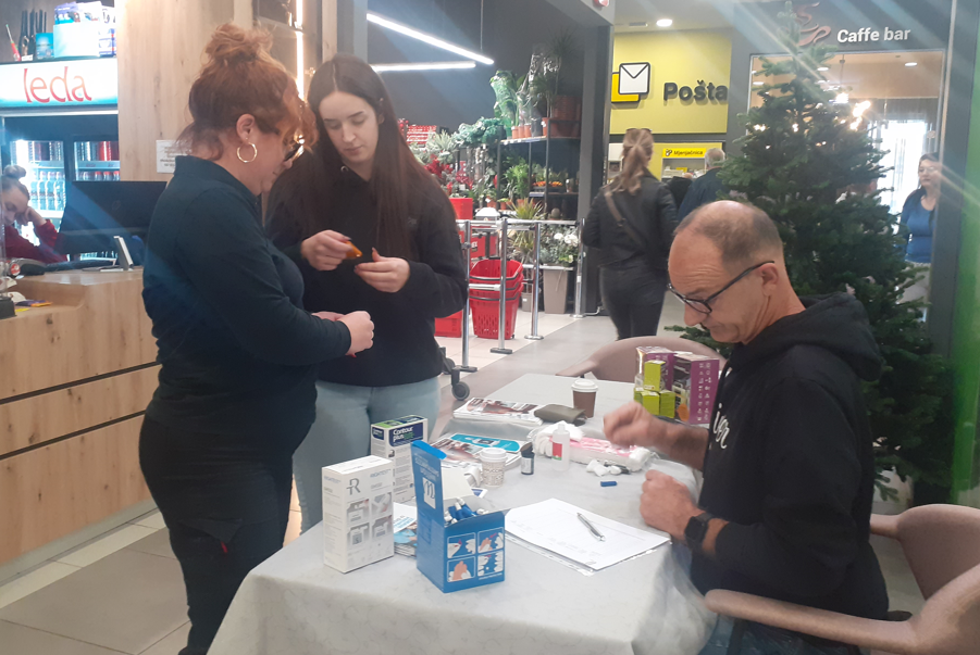 Štand s volonterima Udruge u Ljubuškom, gdje su građani od 10,30 do 12 sati, mogli besplatno provjeriti razinu šećera u krvi bio je smješten u PC Namex.