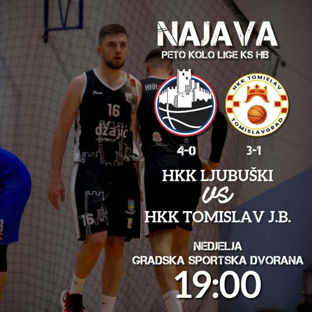 Košarkaši Ljubuškog će u 5. kolu Lige Košarkaškog saveza Herceg – Bosne ugostiti Tomislav. Utakmica se igra u nedjelju u Gradskoj športskoj dvorani u Ljubuškom s početkom u 19 sati. Podsjećamo, nakon četiri odigrana kola košarkaši Ljubuškog su vodeći na ljestvici i imaju maksimalni učinak od četiri pobjede, a košarkaši Tomislava su treći na ljestvici s tri pobjede i jednim porazom.