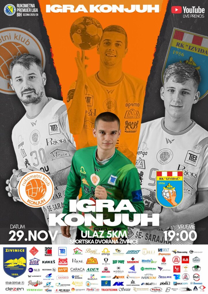Rukometaši Izviđač Agrama u 10. kolu Premijer lige BiH gostuju u Živinicama kod Konjuha Utakmica se igra u subotu, 29. studenoga, s početkom u 19 sati.