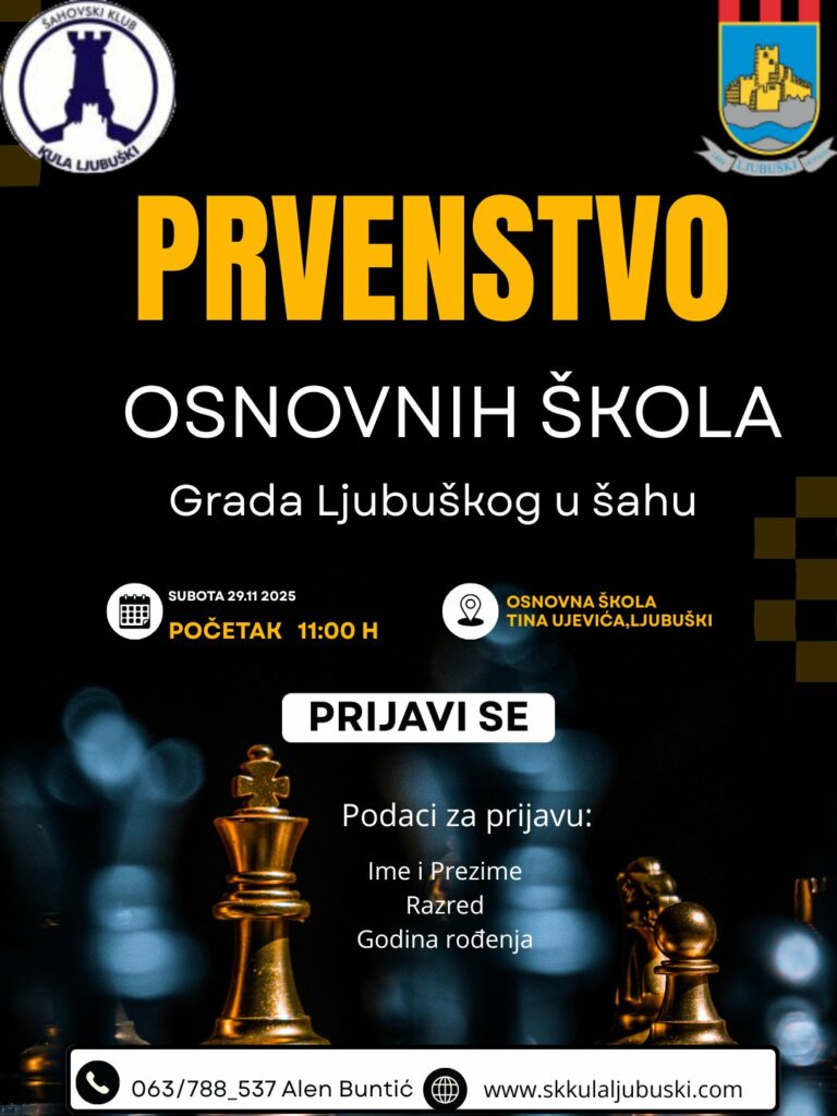 U subotu,29.11 2025 s početkom u 11:00 h, počinje prvenstvo osnovnih škola Grada Ljubuškog u šahu u OŠ TINA UJEVIĆA VITINA!
