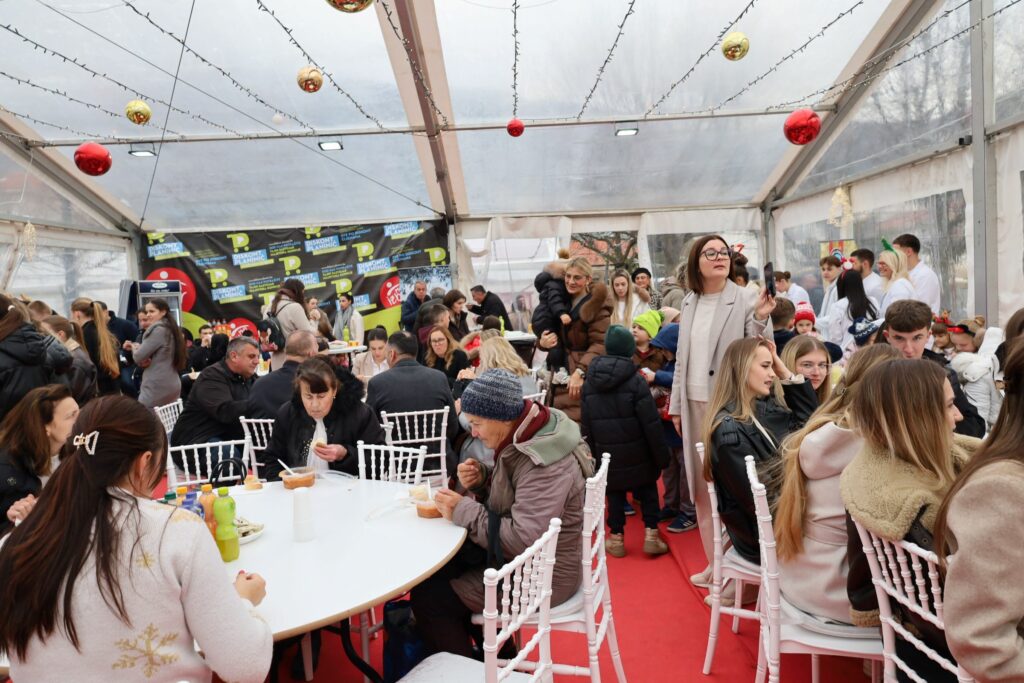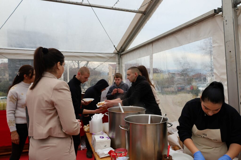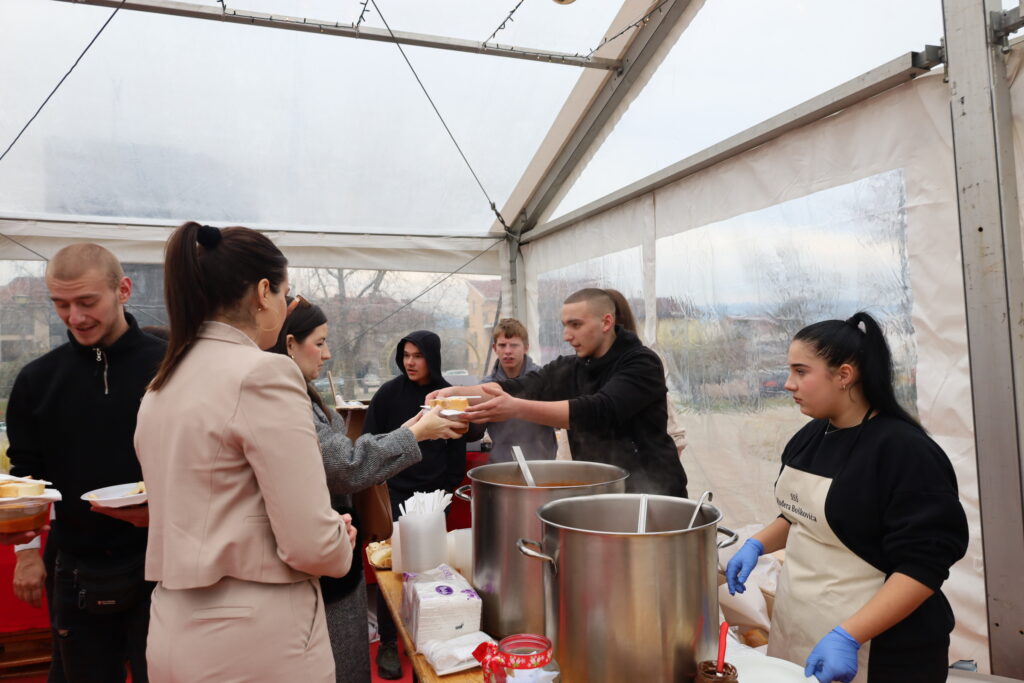 Na štandu podjele hrane kratko smo razgovarali s učenicama škole Petrom Grbavac, Mateom Brajčić i Anamarijom Perić. Iako učenice medicinske i ekonomske škole danas su dijelile hranu te izrazile spremnost volonterskom radu u svim situacijama sličnim današnjoj. Kažu da se već duže pripremaju za ovaj dan, a učenici jutros od 7,30 sati pripremaju hranu i slastice u novoj školskoj kuhinji. Sretne su zbog dobrog odaziva građana i time da su većinu pripremljene hrane podijelile već do 11 sati.