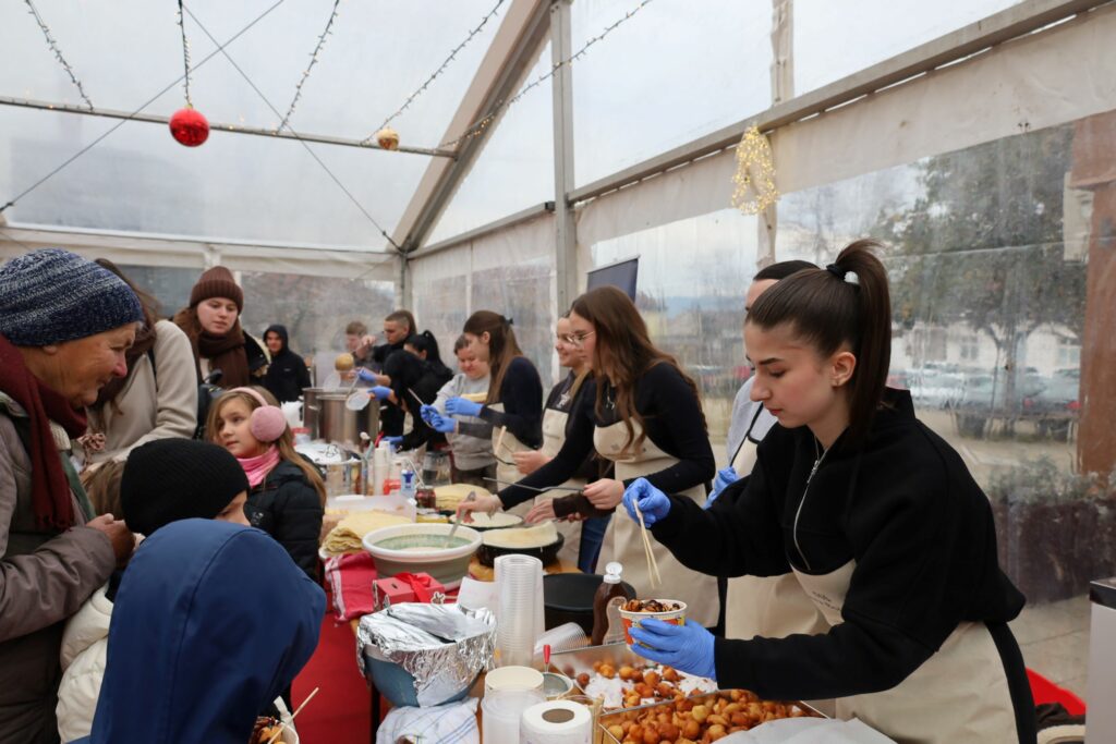 U vremenu od 10 do 12 sati, učenici medicinskih usmjerenja te škole su mjerili šećer i tlak građanima, kuhari i učenici ostalih smjerova su dijelili slatka jela, fritule, palačinke i vafle te posluživali grah s kobasicama.