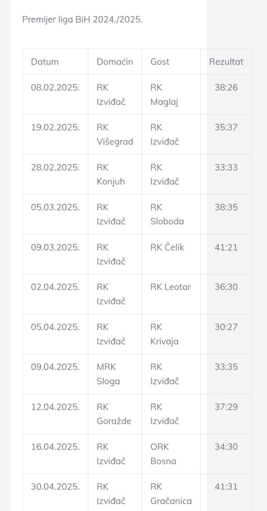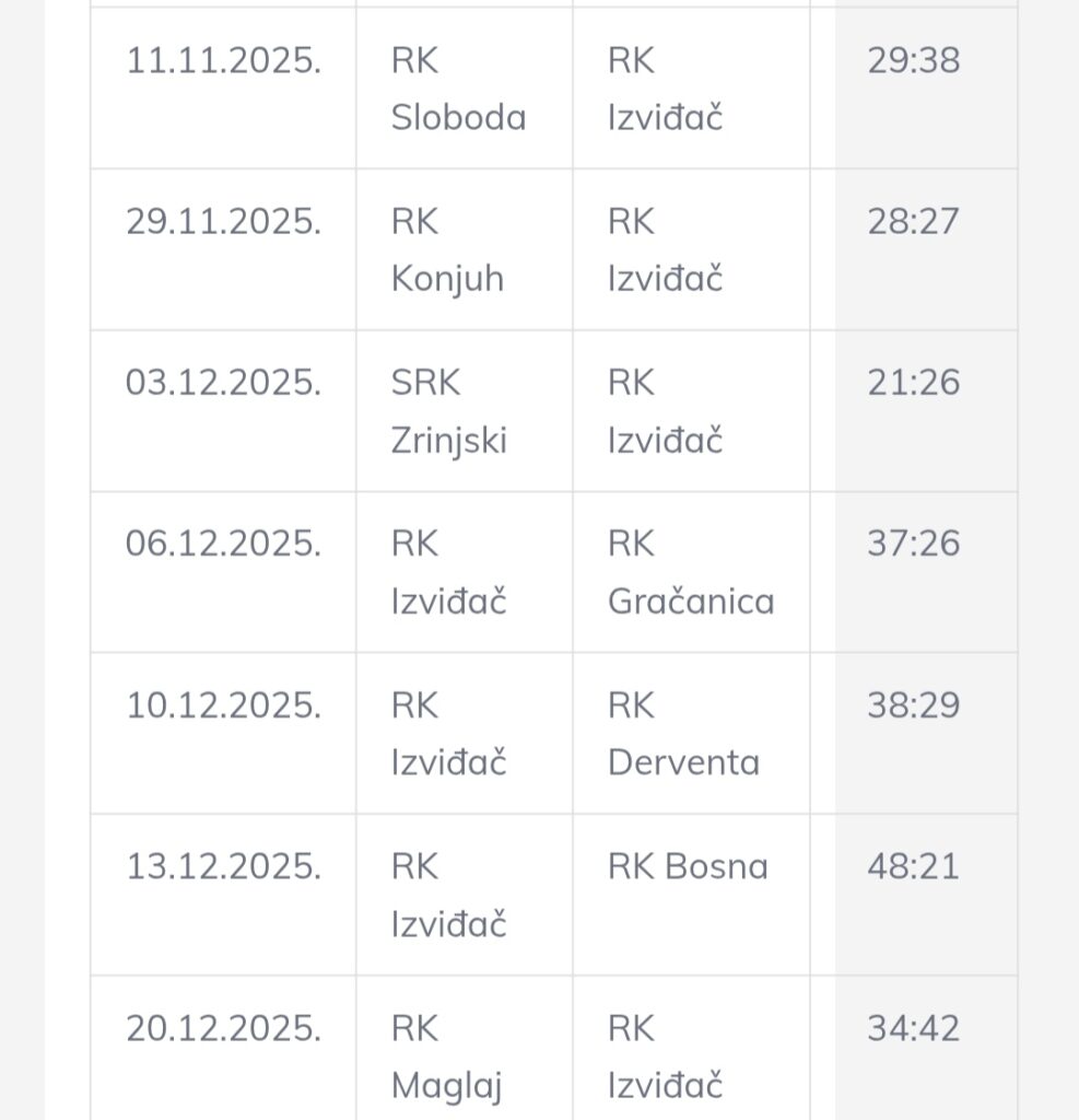 U nastavku donosimo cjelovit statistički pregled rezultata RK Izviđač Agram u drugom dijelu sezoni 2024./2025. te u prvom dijelu sezone 2025./2026., odnosno u kalendarskoj 2025. godini.