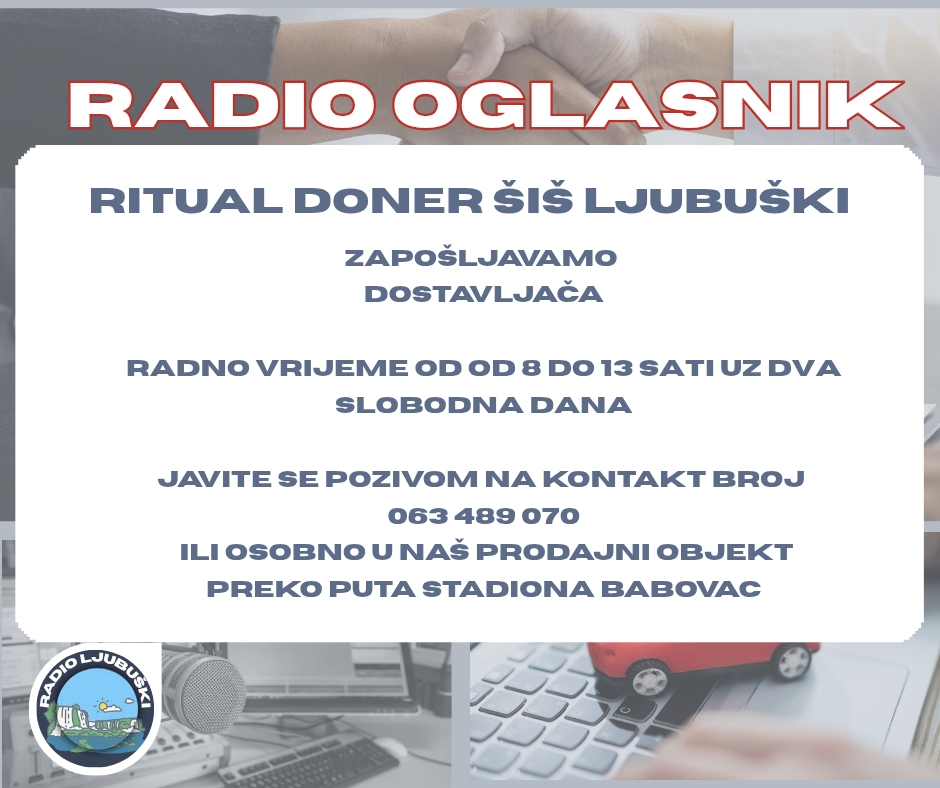 Zainteresirani javiti se na možete pozivom na kontakt 063 489 070 ili doći osobno u gril Ritual na obilaznici u Ljubuškom.