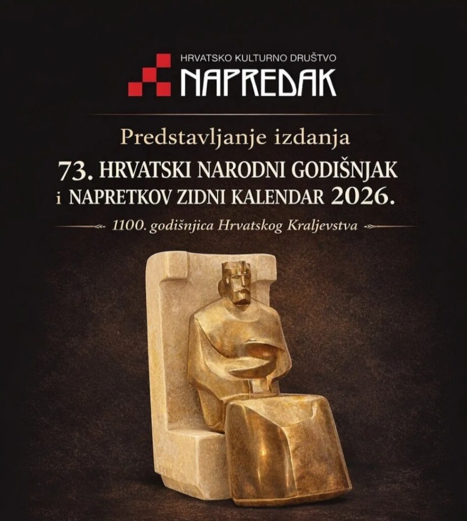 Hrvatsko kulturno društvo Napredak prezentiralo je 73. Hrvatski narodni godišnjak i Napretkov zidni kalendar za 2026. godinu, posvećeni 1100. godišnjici Hrvatskog Kraljevstva.