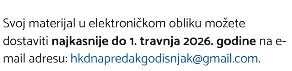 Uredništvo zadržava pravo odabira radova i njihove uredničke prilagodbe.U slučaju bilo kakvih pitanja ili dodatnih pojašnjenja, slobodno se obratite na istu e-mail adresu.Uz zahvalnost na dosadašnjoj uspješnoj suradnji, srdačno Vas pozdravlja