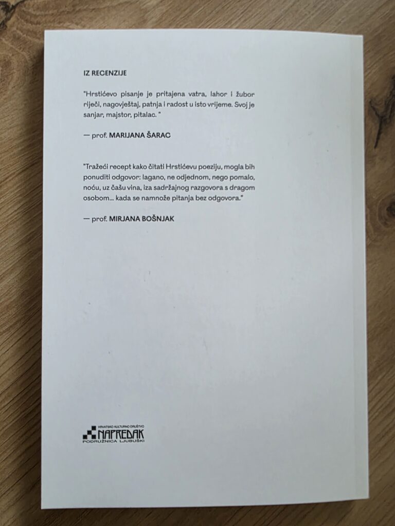 Prof. Mirjana Bošnjak napisala je: „Tražeći recept kako čitati Hrstićevu poeziju, mogla bih ponuditi odgovor: lagano, ne odjednom, nego pomalo, noću, uz čašu vina, iza sadržajnog razgovora s dragom osobom…kada se namnože pitanja bez odgovora.“