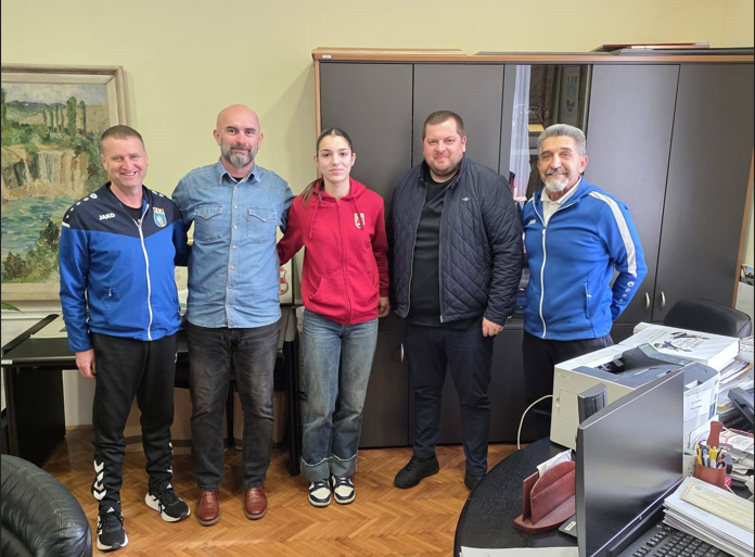 Zlatnu rukometašicu Izviđača Katarinu Kraljević primili su gradonačelnik Ljubuškog Vedran Markotić i predsjednik Gradskog vijeća Tihomir Kvesić.