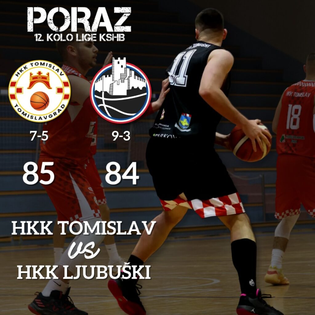 Košarkaši Ljubuškog su jučer u 12. kolu Lige KS Herceg-Bosne u Tomislavgradu poraženi od domaćeg Tomislava 85:84, po četvrtinama je bilo 24:18, 24:12, 23:29 i 14:25.