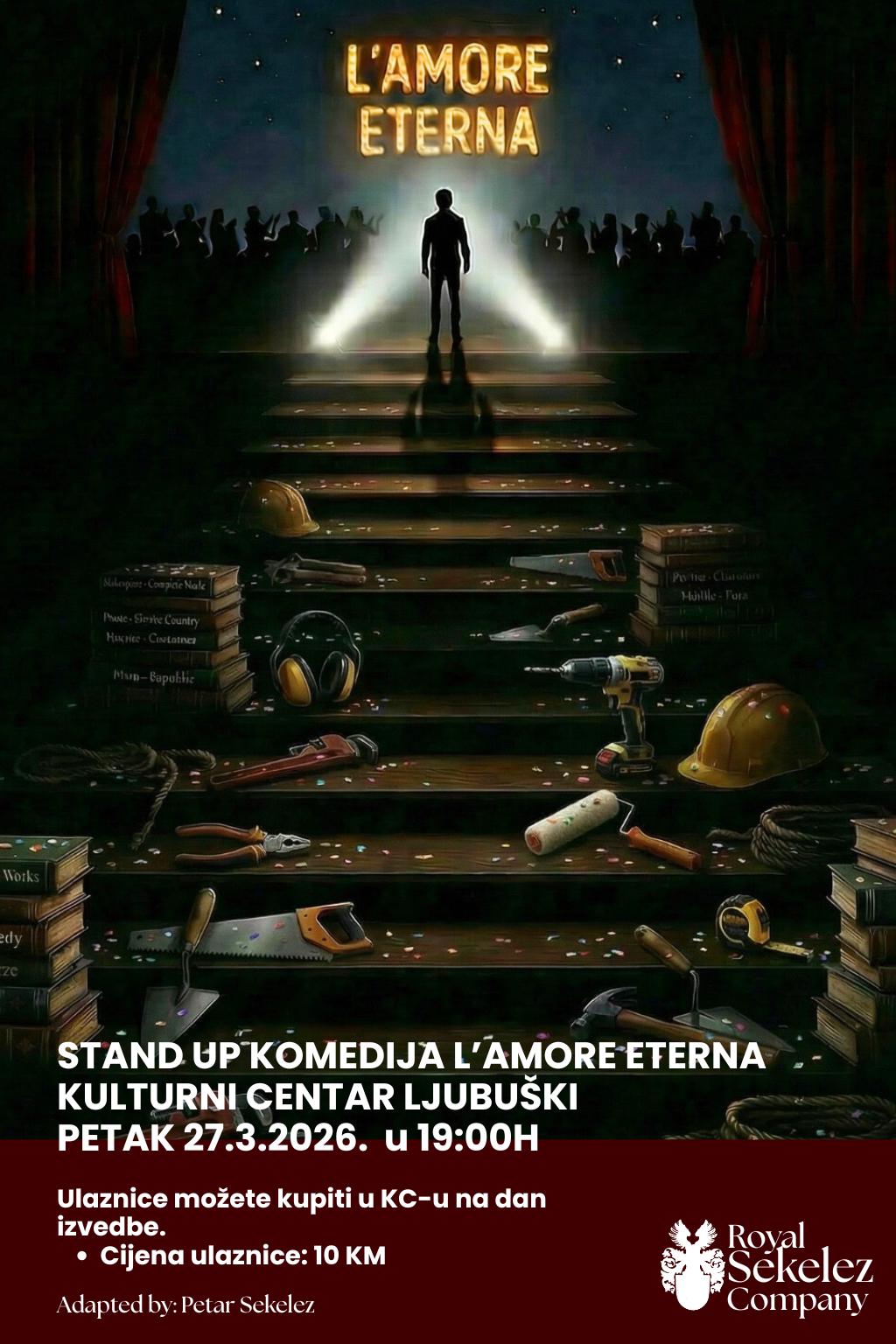 Ljubitelji kazališta i dobrog humora u Ljubuškom imat će priliku uživati u stand up komediji „L’amore eterna“, koja će biti izvedena u petak, 27. ožujka 2026. godine, s početkom u 19 sati u Kulturnom centru Ljubuški.