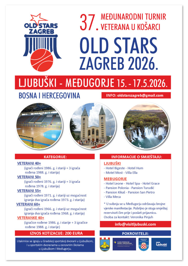Najava 37. međunarodnog turnira veterana u košarci koji će se održati od 15. do 17.svibnja, 2026., u Ljubuškom i Međugorju. Na ovom turniru mogu sudjelovati ekipe u kategorijama muški +40, +50, +55 +60 i žene +35 do 45 godina.