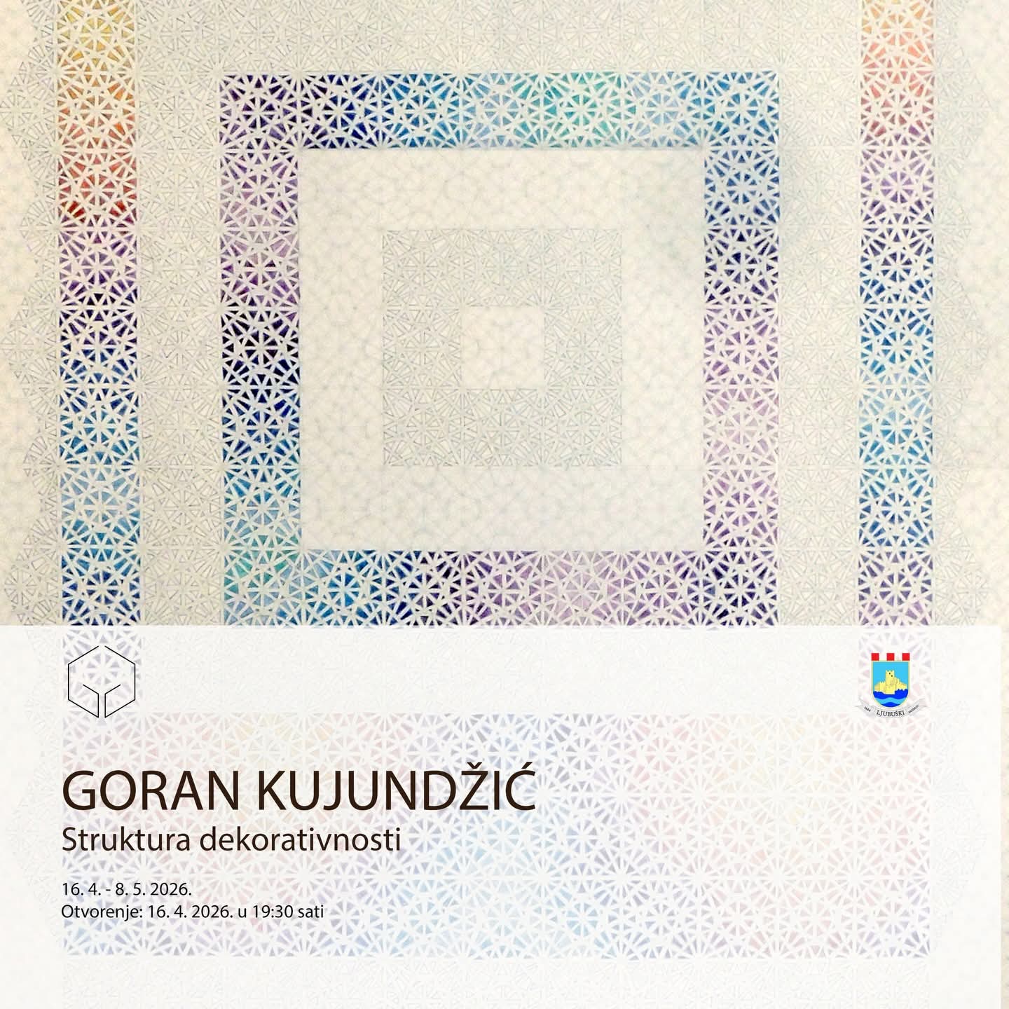 Gradska galerija Ljubuški – JU „Kulturno-športski centar“ Ljubuški organizira izložbu naziva Struktura dekorativnosti vizualnog umjetnika s osječkom adresom Gorana Kujundžića. Otvorenje izložbe će se održati u četvrtak 16. travnja s početkom u 19:30 sati.