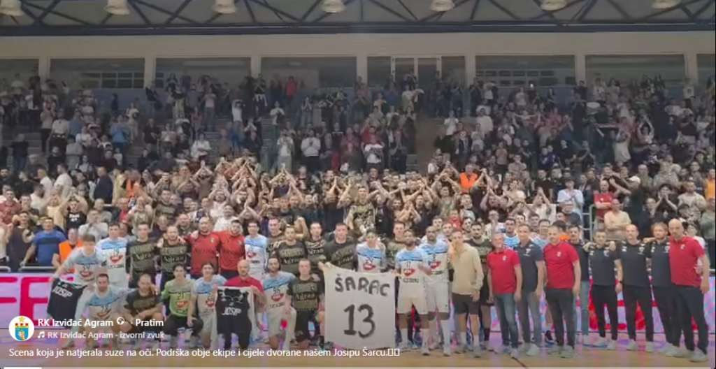 Od samog početka bilo je jasno koliko ova utakmica znači. Posebno emotivan dio susreta bila je simbolična gesta podrške obje momčadi koje su na svojim dresovima nosili ime rukometaša Josipa Šarca koji igrački povezuje oba kluba.